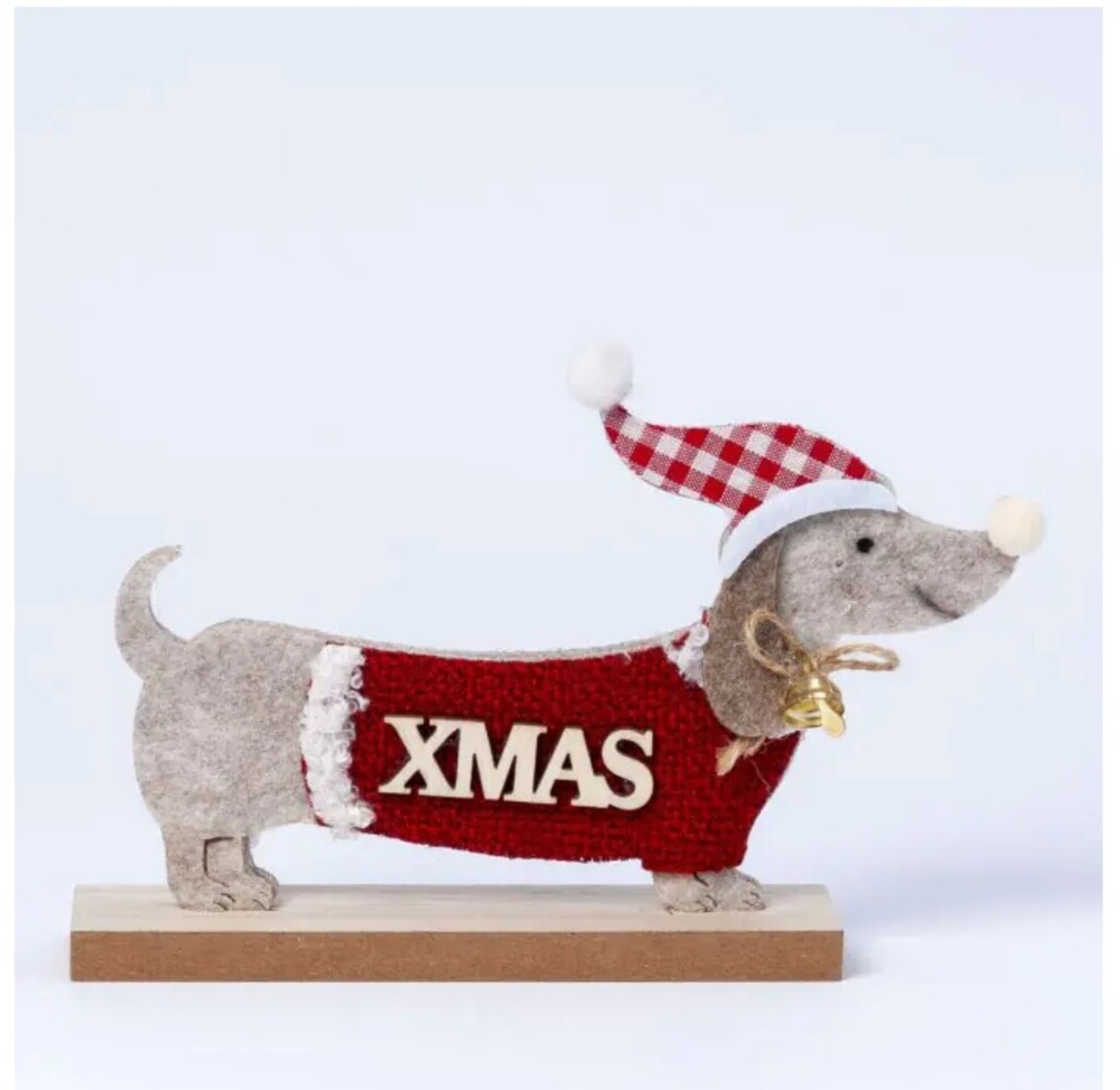 Figura fieltro perro salchicha letrero madera X´mas, min.2 2.60€ ud