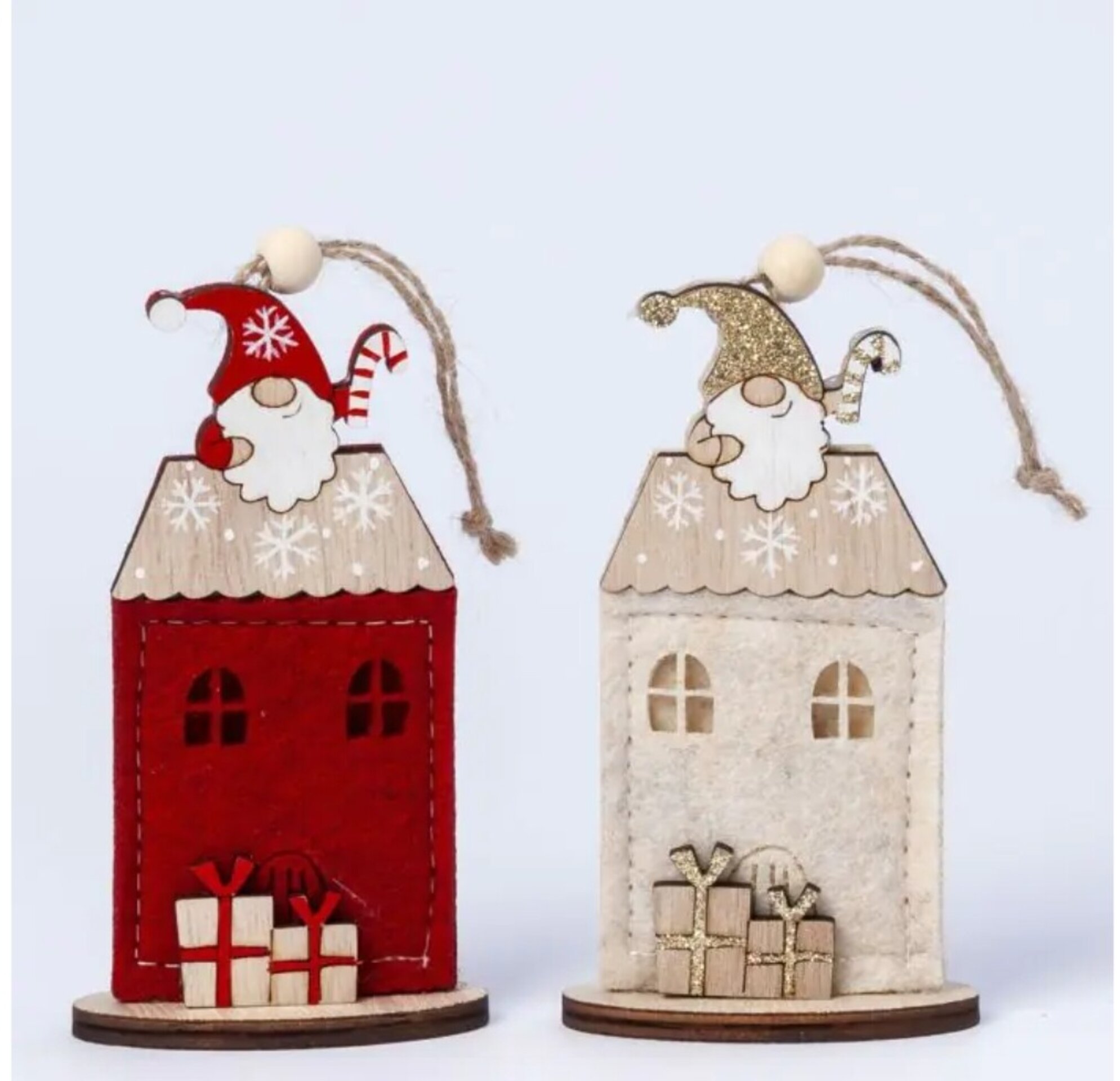 Colgante casita Papa Noel tejado rojo/beige 11,3 cm. 1.70€ ud