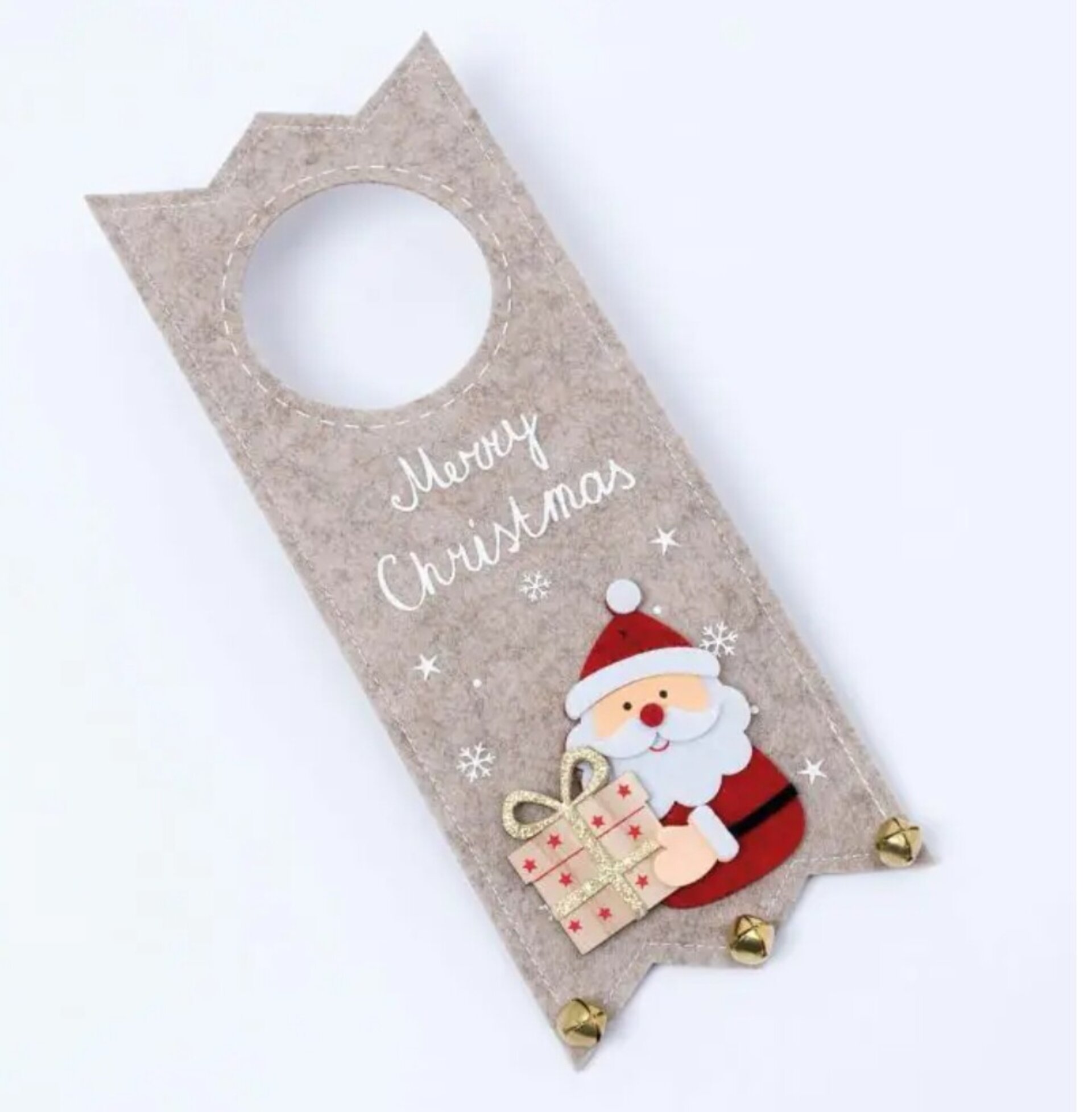 Adorno para la puerta Papa Noel regalo cascabeles 3bombones