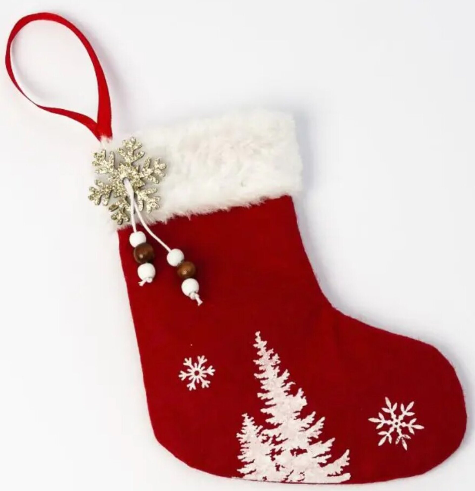 Calcetín rojo 19cm. con árbol y copo nieve dorado