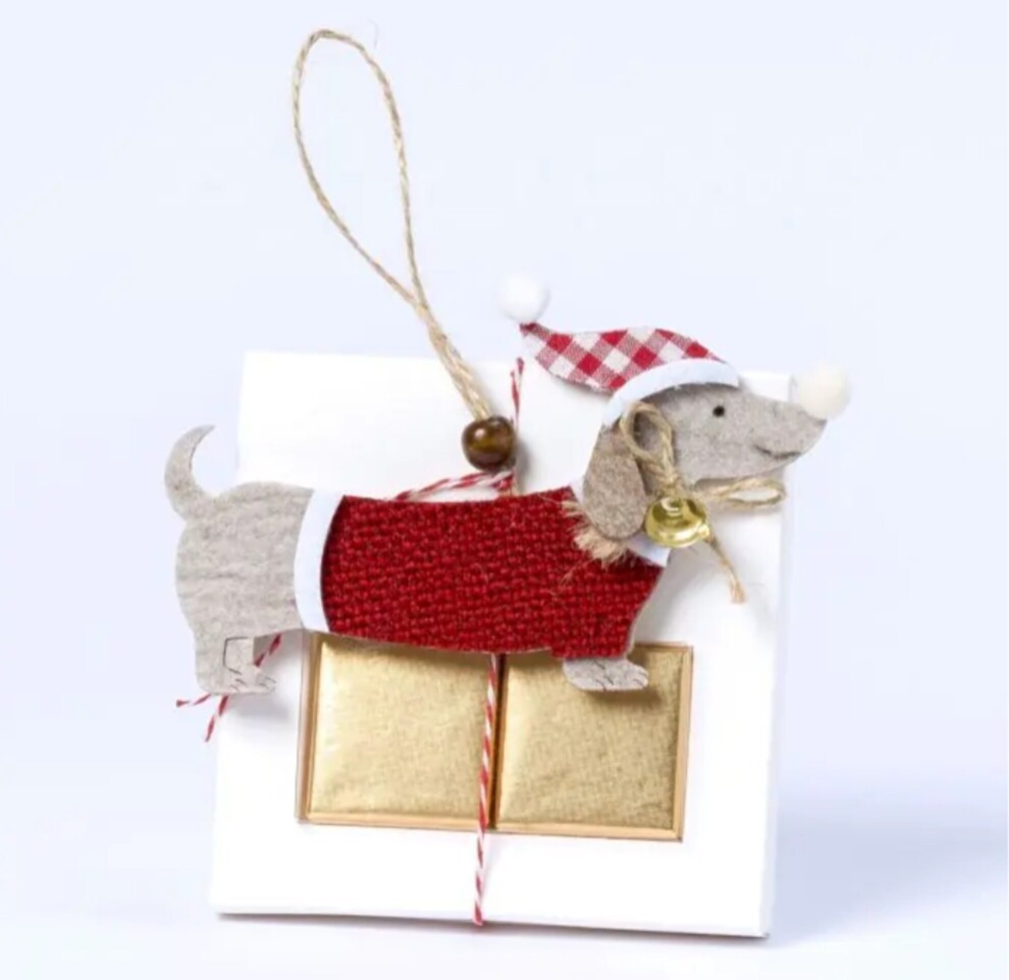 Colgante navideño perrito gorro Papa Noél 2 napolitanas