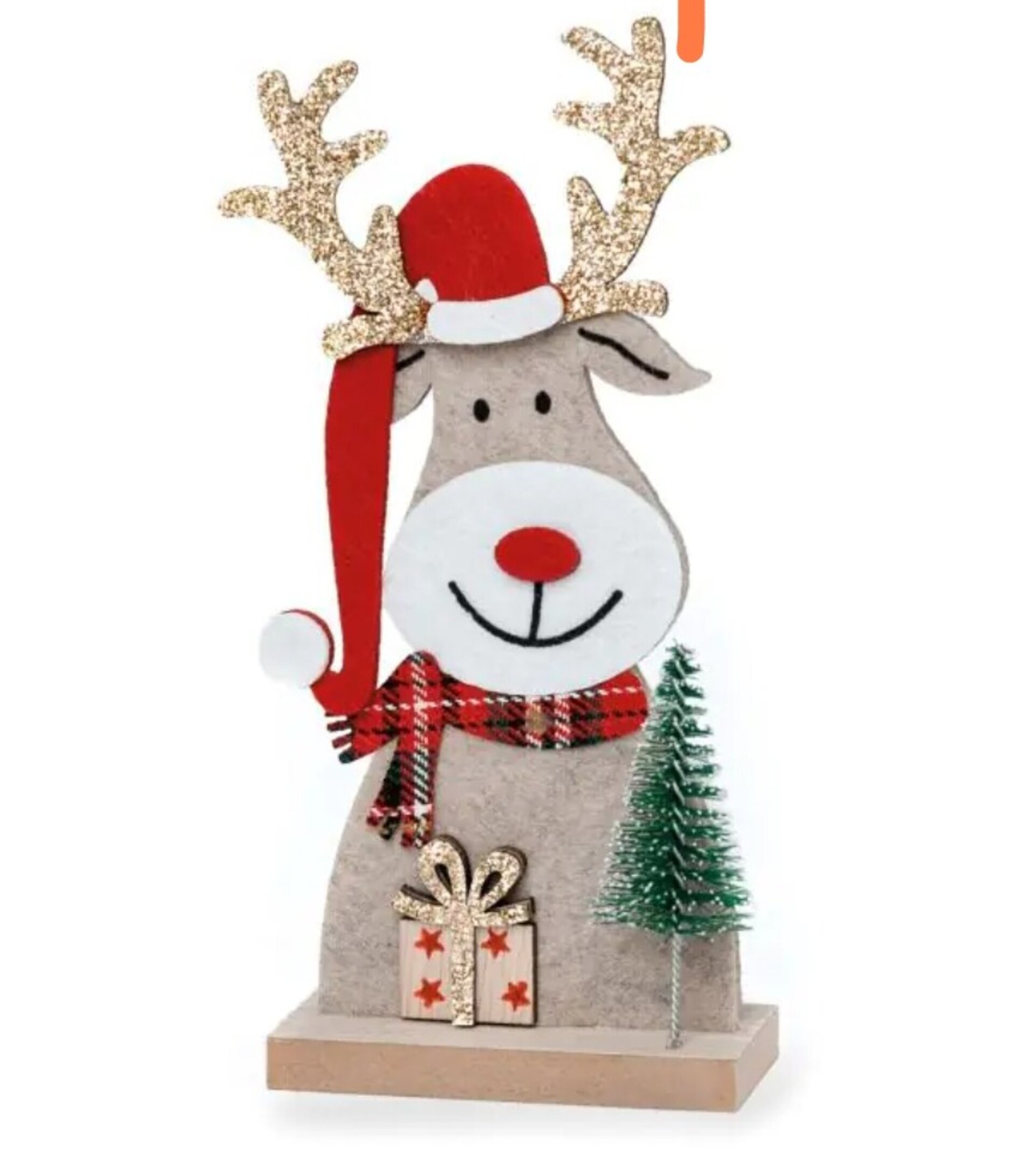 Reno fieltro con base de madera árbol y regalo 18cm.