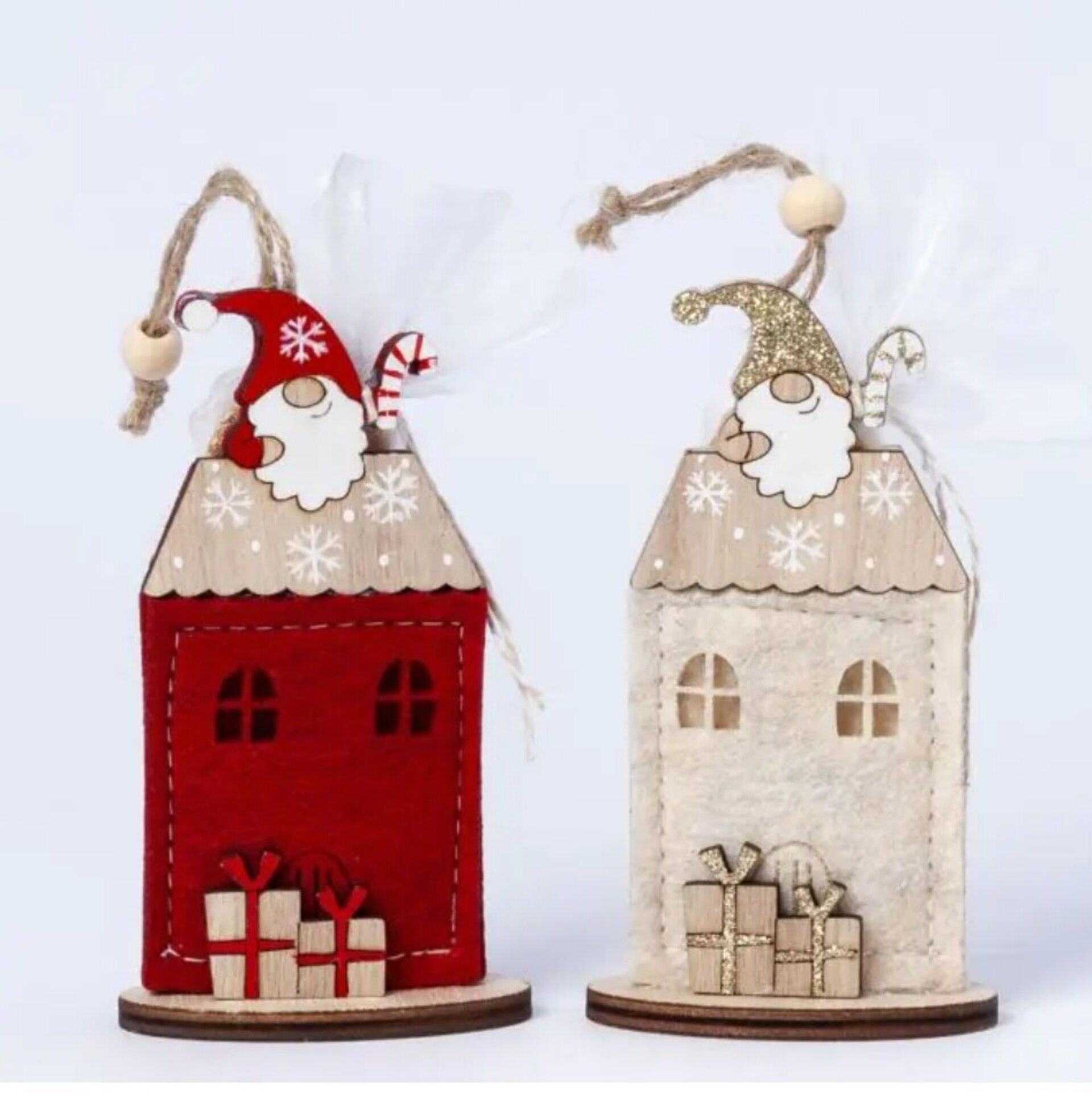 Colgante casita Papa Noel tejado rojo/beige 2.40€