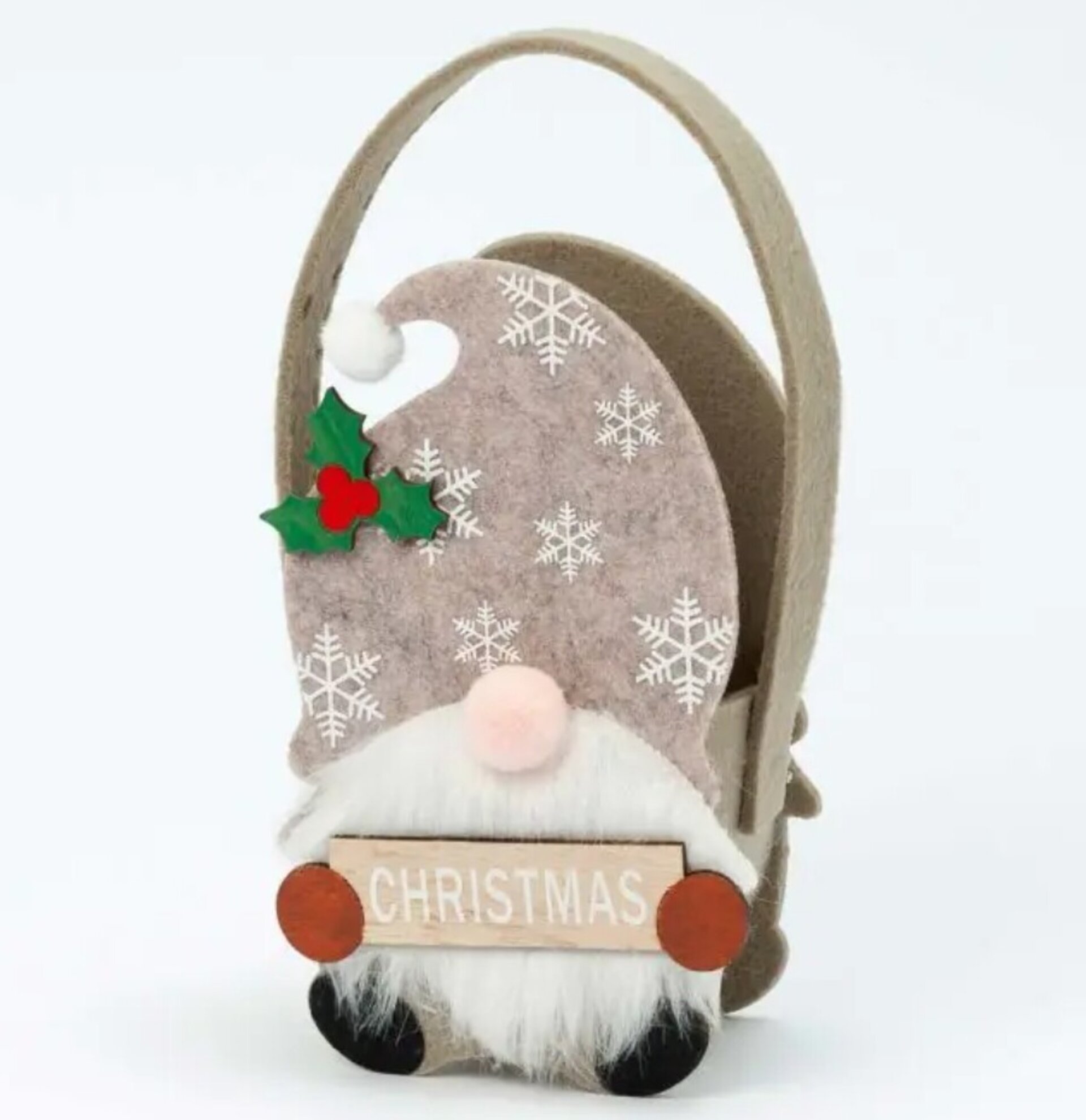 Cesto fieltro Gnomo beige 19cm.(asas) letrero Christmas