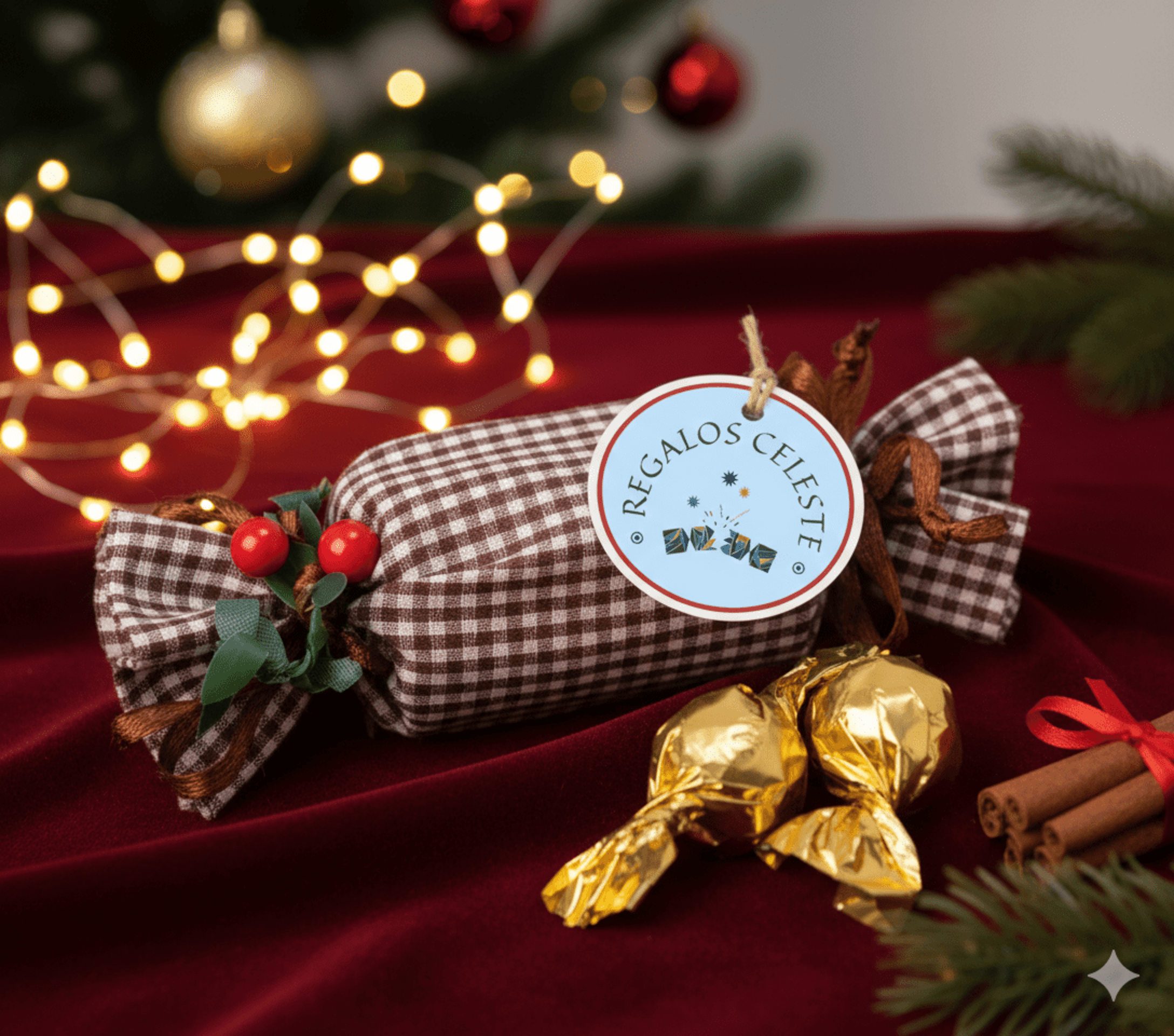 Estuche pañuelo 5 bombones tarjeta Feliz Navidad