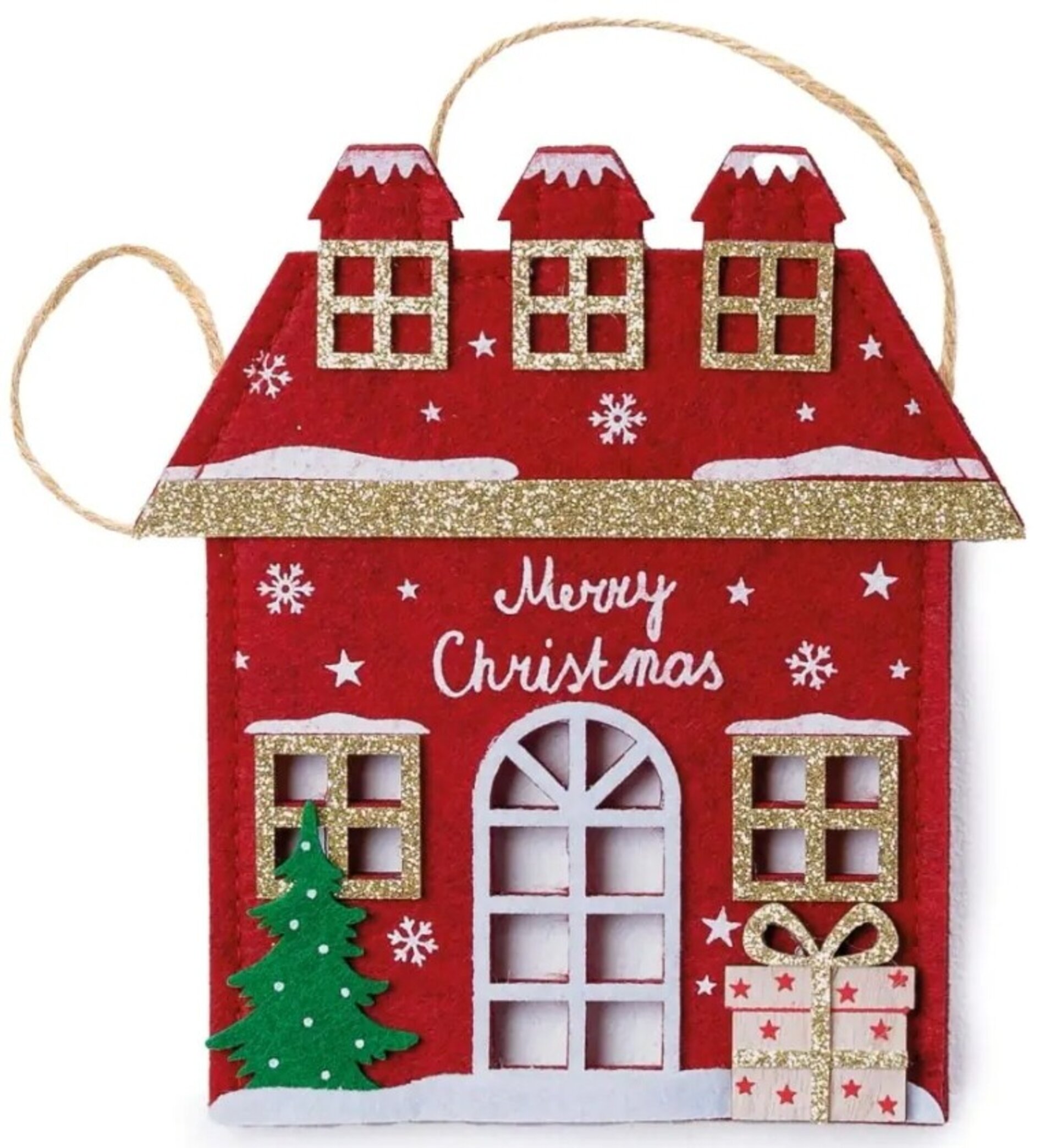Colgante Casa Merry Christmas fieltro y lamé dorado 16,5cm