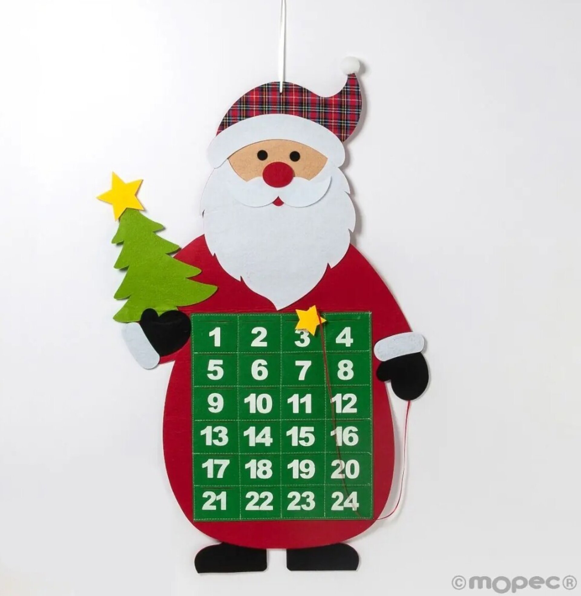 Calendario de adviento de fieltro Papa Noél 52x71cm