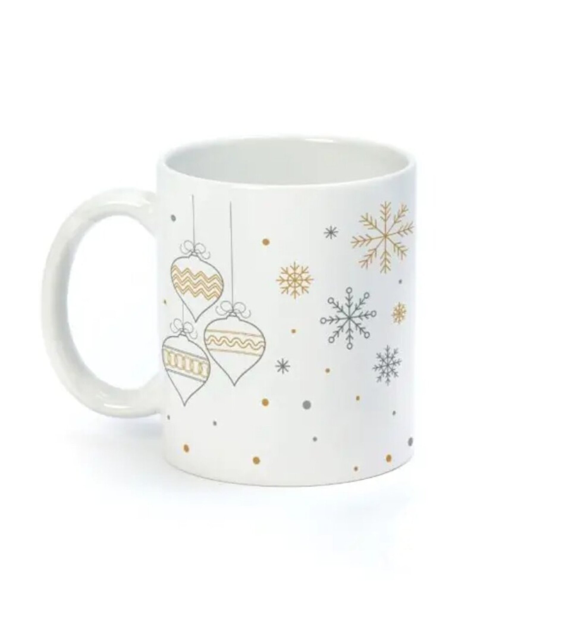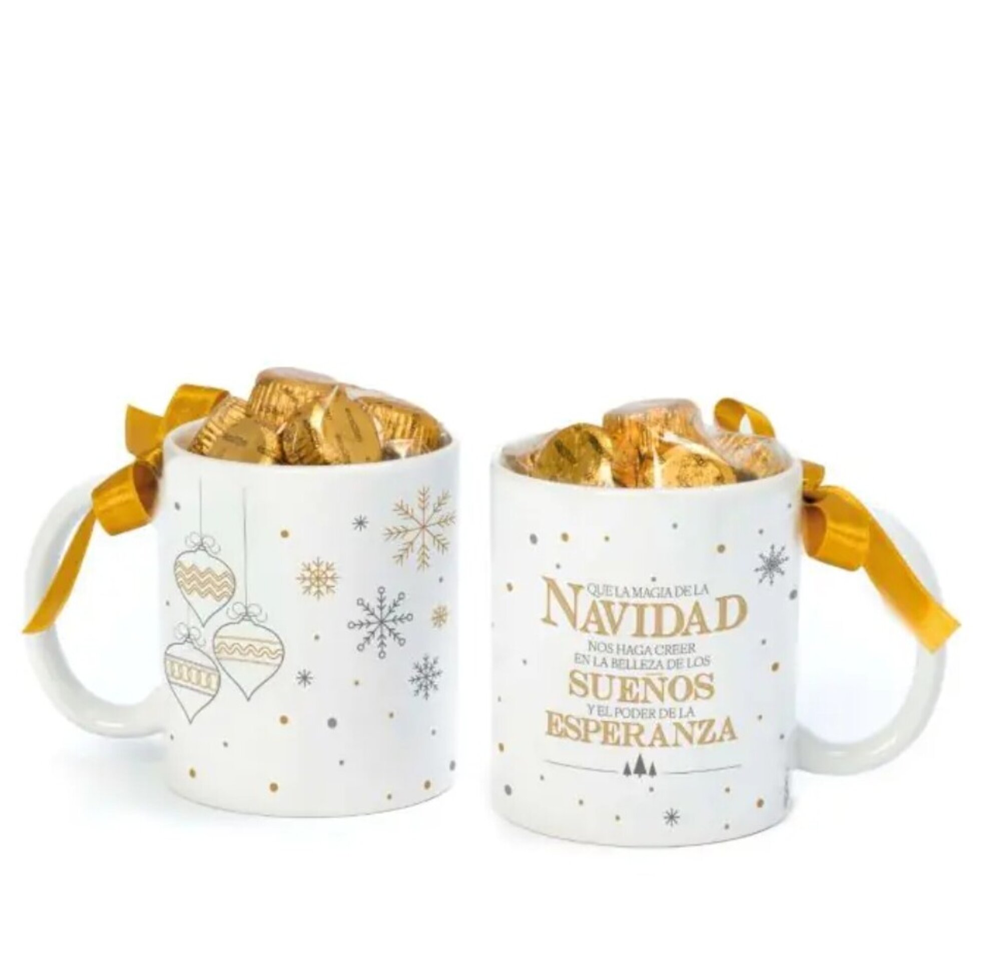 Taza copos de nieve y mensaje 6bombones en caja regalo